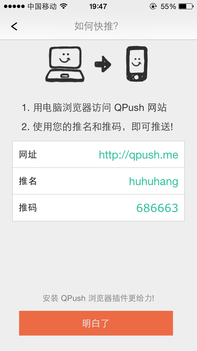 [Expired] 电脑向手机推送文字的便捷工具:QPush 快推