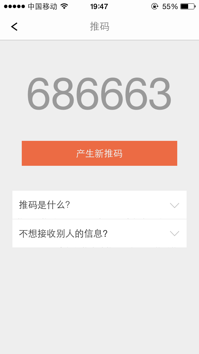 打开手机端会提示你设置一个属于自己的「推名」,同时系统会生成一个「推码」。