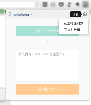 - 在浏览器插件上输入相应的「推名」和「推码」,推送通道就建立起来了。