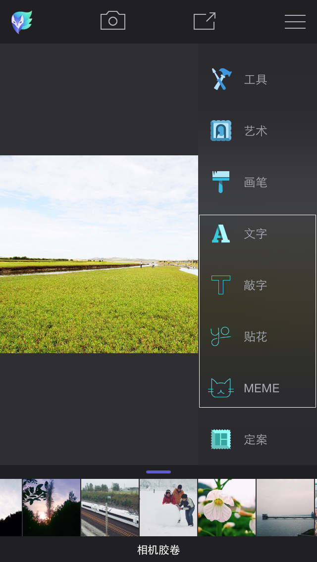 画笔和文字选项提供了丰富的小功能。添加文字是许多读者的日常需要,但是不幸的是,国外的应用对中文字体的支持都很一般,甚至没有额外的中文字体。贴纸和恃效插件让你的照片独具一格,添加和自定义文字、边缘、相框等也会使你发到朋友圈的图增色不少。