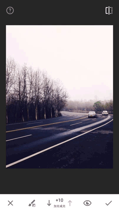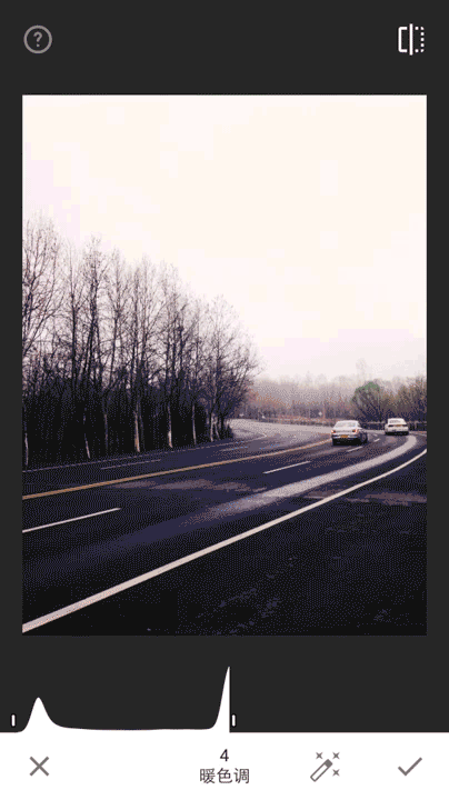 即可以快速地自动调整图片的色调,极大简化操作。当然,如果你想要进行更精确的调整,请在图片上垂直滑动以访问编辑菜单。选择某个选项后,水平滑动即可精确修片。垂直和水平滑动的手势操作,我认为是移动设备上最便捷的操作方式之一,非常适合图片后期处理。