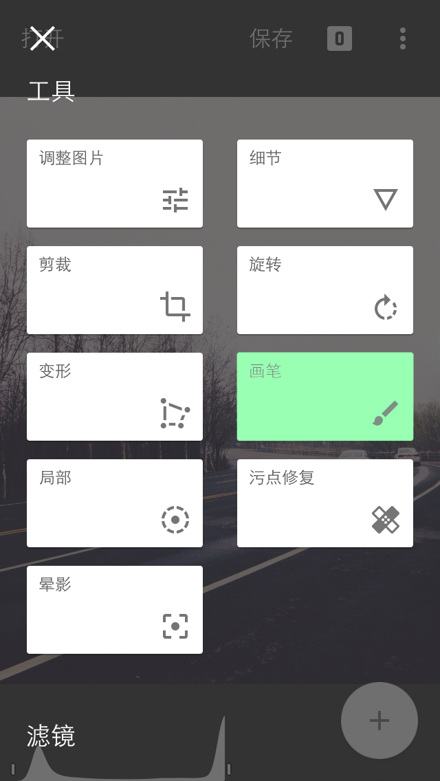 你可以通过画笔工具有选择性的改变局部的效果。通过滑动指尖可形成用于高级编辑的画笔。通过放大和缩小图片可更改画笔的大小。点按