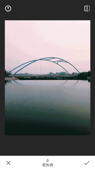 色调对比度滤镜是在阴影部分和高光部分形成细致对比,同时还能精确控制曝光。在图片上垂直滑动即可访问编辑菜单。选择某个选项后,水平滑动即可调整修片。该滤镜的垂直菜单还包括: