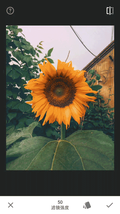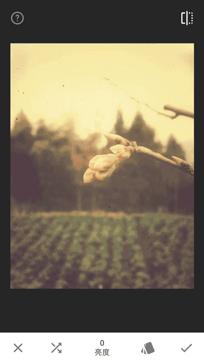 - 晕影强度:向右滑动可调暗图片的边缘,并在复古色彩中融入晕影。