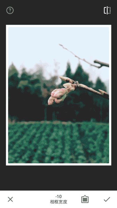 即可选择相框风格。许多相框拥有同一风格的多种变化形式,因此可再次点按相框缩略图以查看所有可用变化形式。在图片上水平滑动即可增大或缩小叠加在图片上的边框的大小。