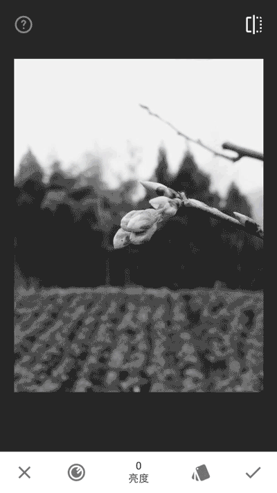 添加彩色滤镜。在图片上垂直滑动即可调整亮度、对比度和颗粒。选择某项后,水平滑动即可修片。该滤镜的垂直菜单还包括: