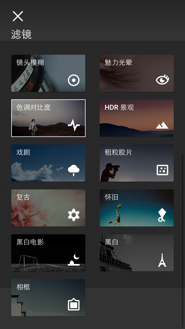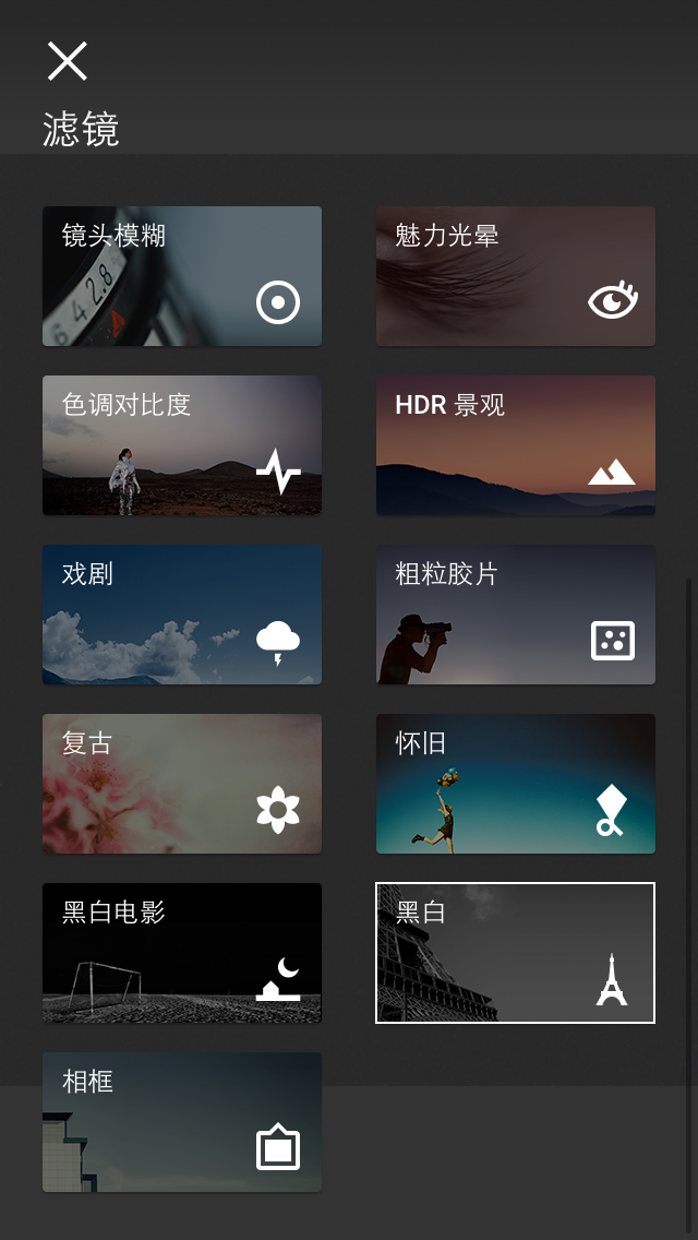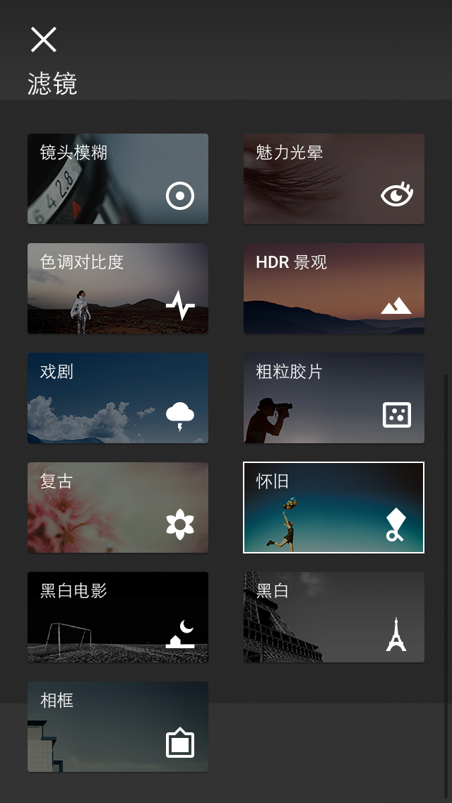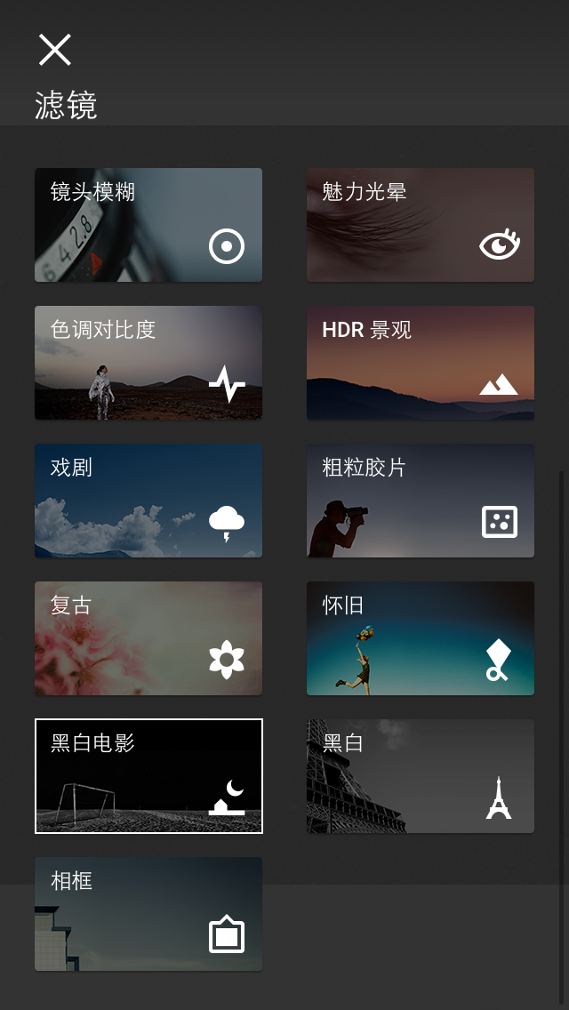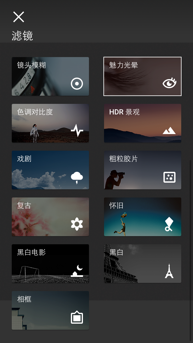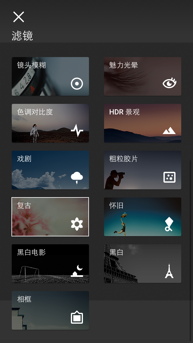 话不多说,让我们来看一看 Snapseed 的滤镜部分吧。