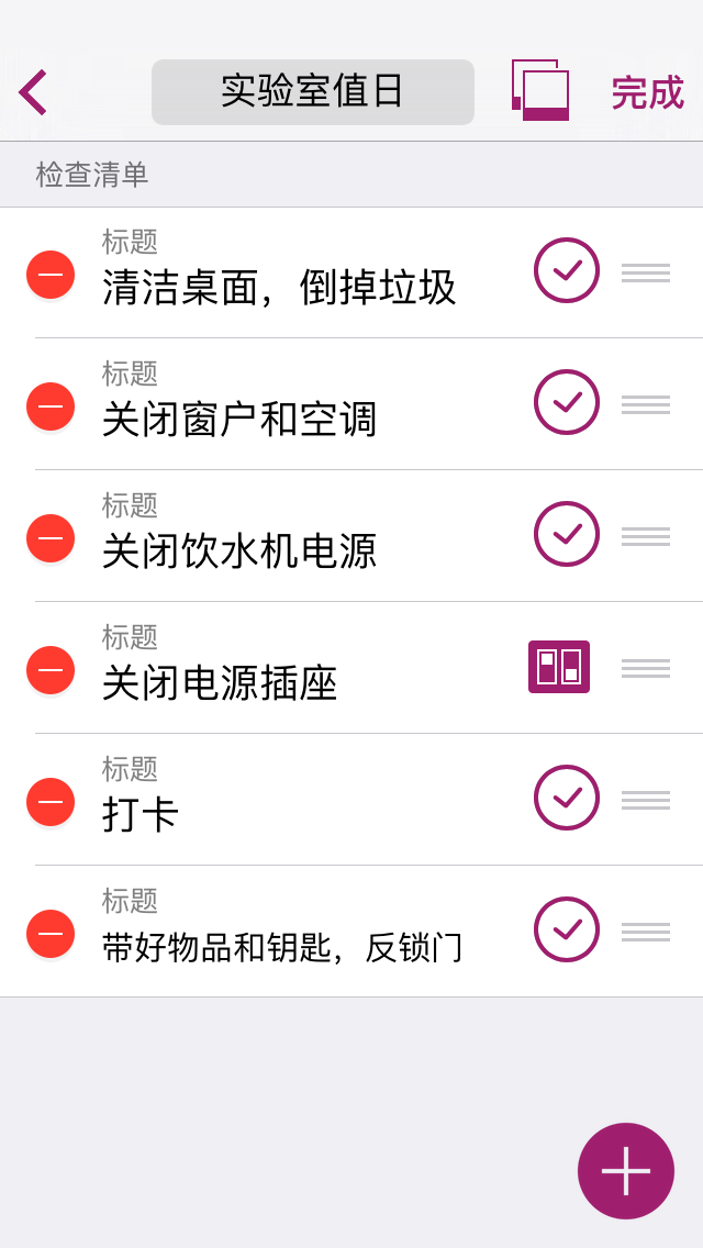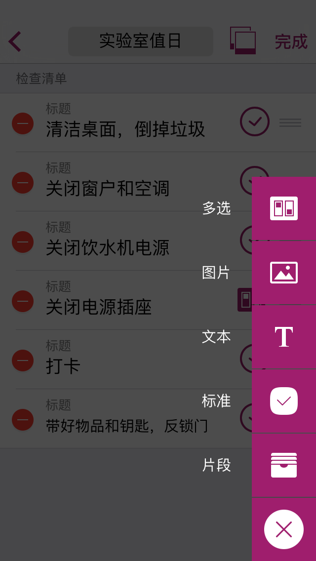 - 片段:可以插入片段将检查流程划分为不同的板块。例如:将放假回家需要携带的东西分为数码产品,衣物,生活用品等。