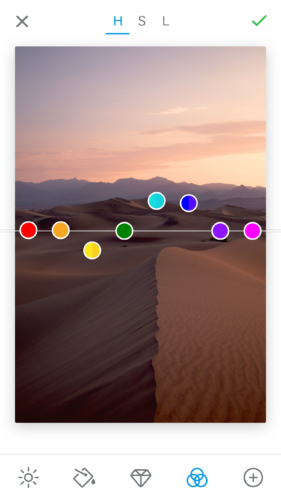 - 支持像亮度、对比度等基础编辑工具。有趣的是采用了圆点上下拖拽的交互方式。