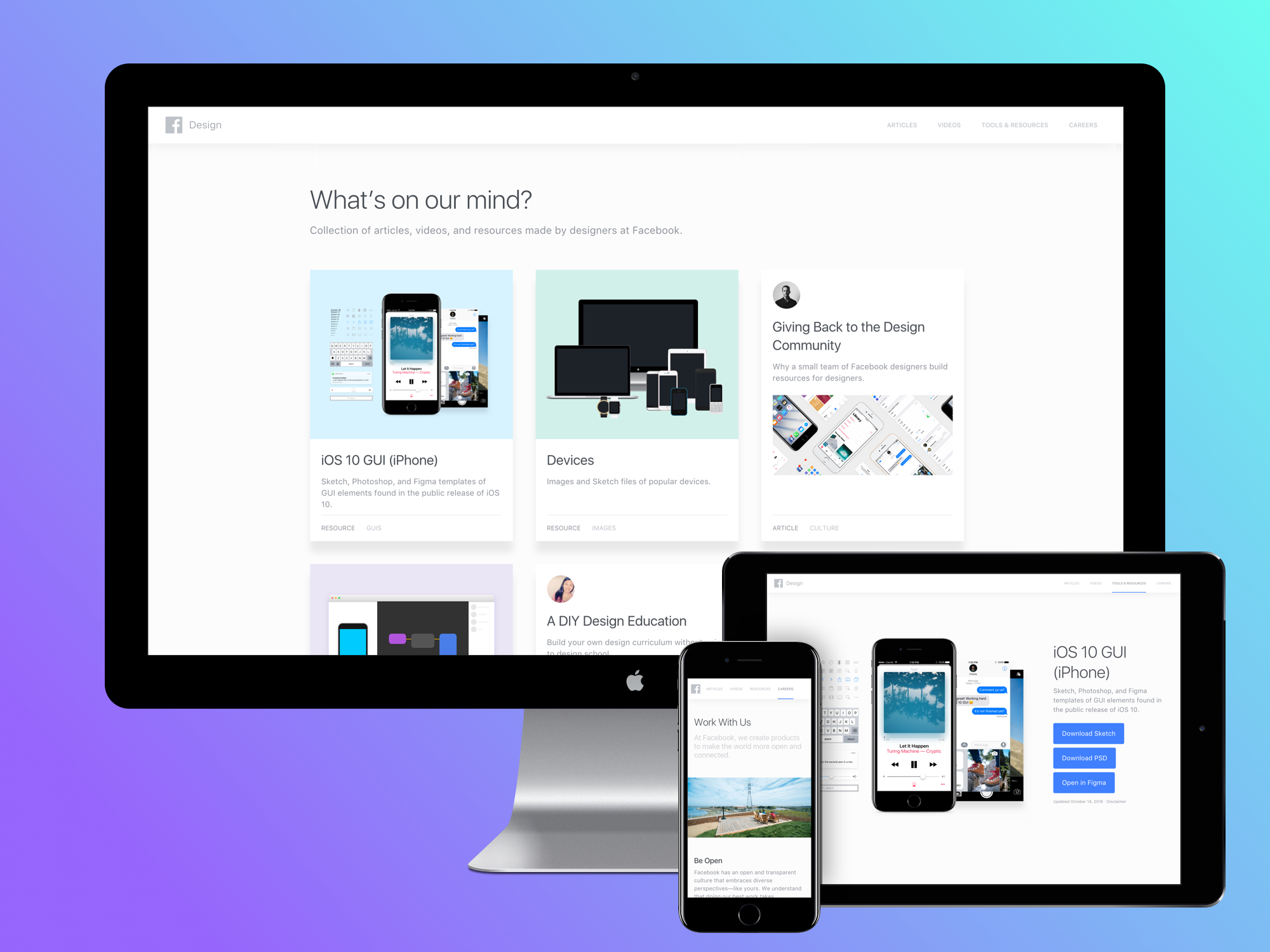 Facebook Design 是 Facebook 去年就已经推出的一个网站,提供了平面 UI 设计资源,可供自由下载使用。10 月份网站全面更新之后,新增了视频和文章板块。网站变得更加好看,内容也丰富了不少。