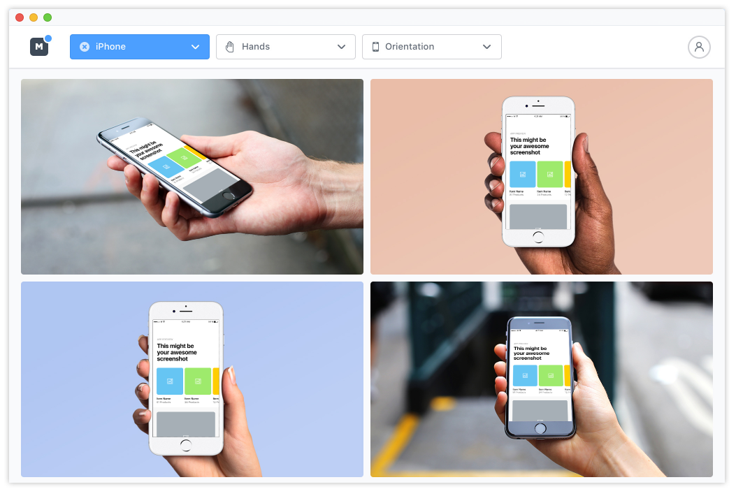 选择不同的模板,截屏就和多样的手持场景搭配在一起。Mockuuups Studio 不仅支持移动设备截屏,还支持 Mac 等桌面设备截屏。目前,免费用户可以简单套用模板,满足基本需要。如果你想享受 Sketch 和 Photoshop 图层导入等高级功能,需要支付 5 刀/月订阅。